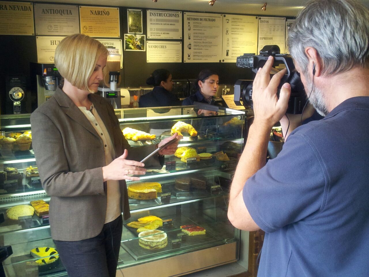 I speak at coffee events and fairs as well as origin trips in Colombia and present information in English, Spanish and French. I’ve appeared on TV and been interviewed on the radio numerous times. Listen to this coffee-focused interview for Colombia’s top publication, Semana (it’s in English, don’t worry!).